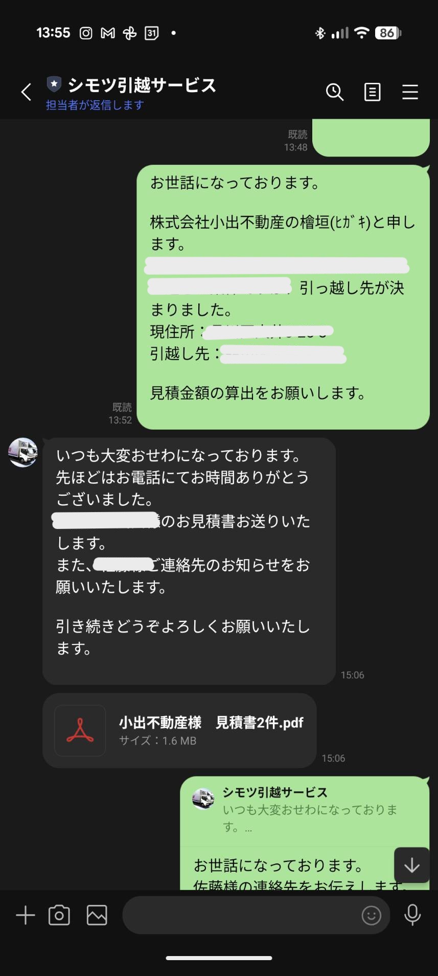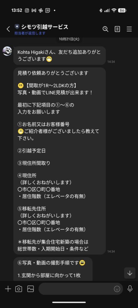 何が便利って、LINEでのやり取りが可能!