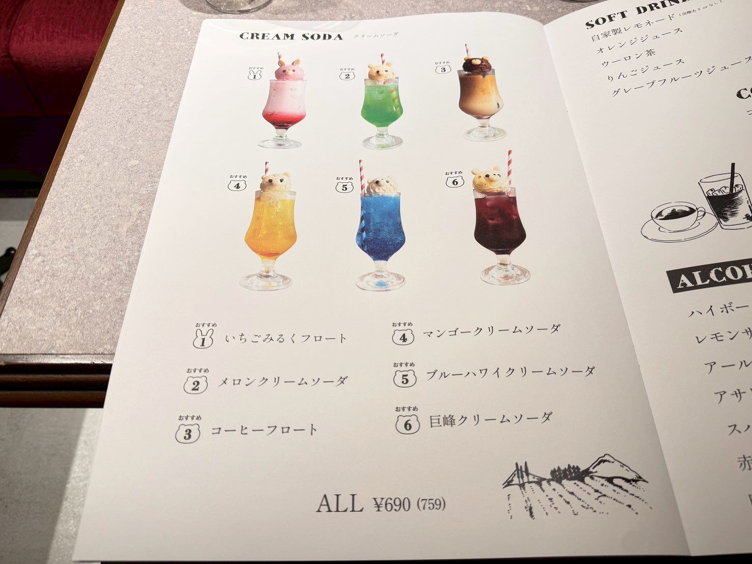 店員さんからおすすめしていただいたのがアニマルアイス付きのクリームソーダや名物の飲めるフレンチトースト!!