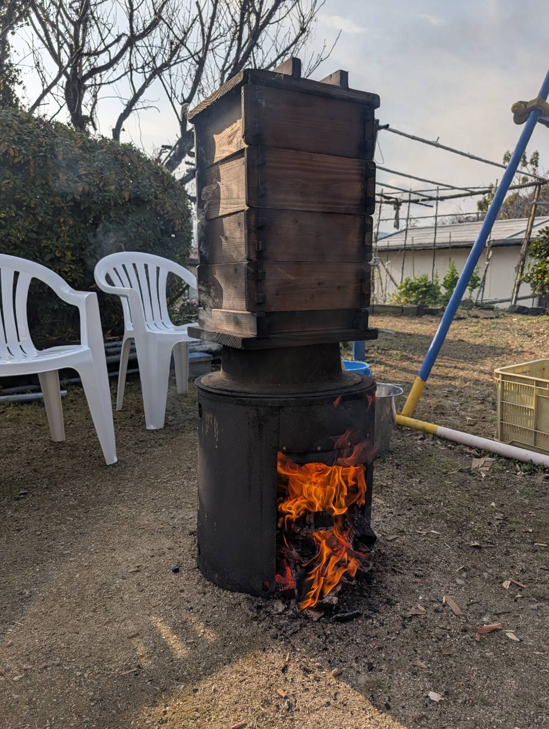 かまどに羽釜をセットして…