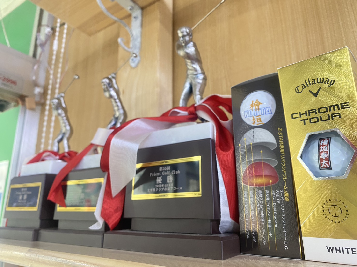 トロフィーは誕生日にいただいた記念ボールと一緒に店舗に飾ってあります!!