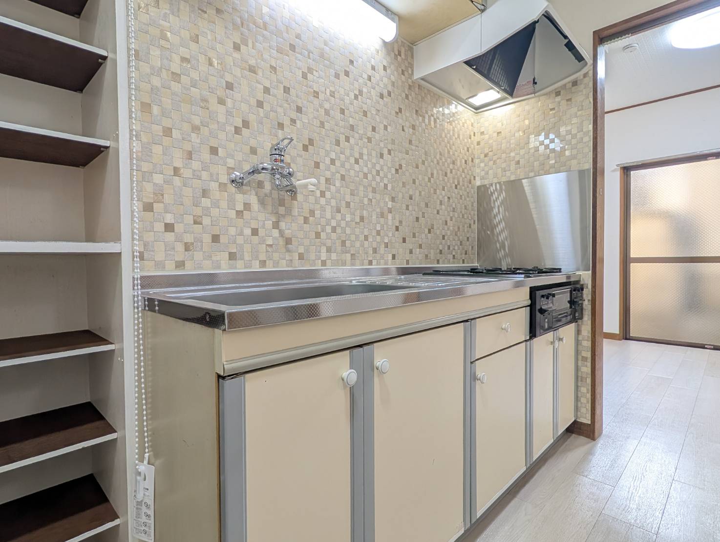 ◆洋室照明:新規交換 ◆キッチンタイル部分:モザイクシート貼り ◆キッチン手元照明:新規交換 ◆シューズボックス:ロールスクリーン設置
