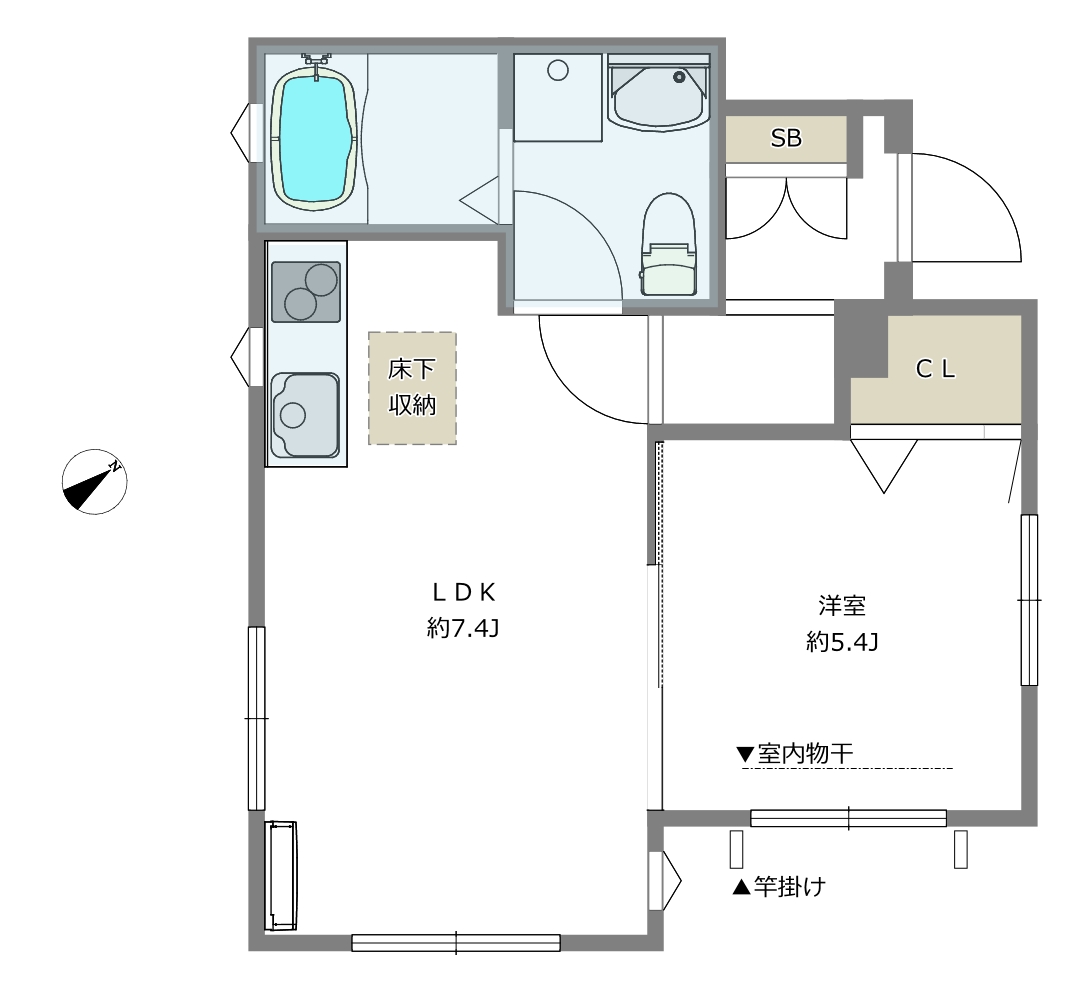 間取り 1LDK(洋:5.4帖/LDK:7.4帖)