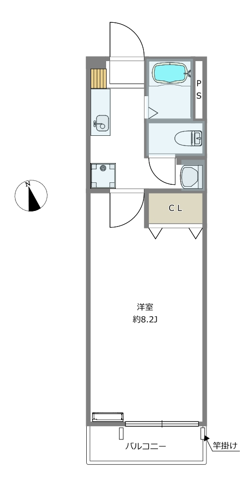 | 間取り | 1K(洋8.2帖・K1.5帖) |