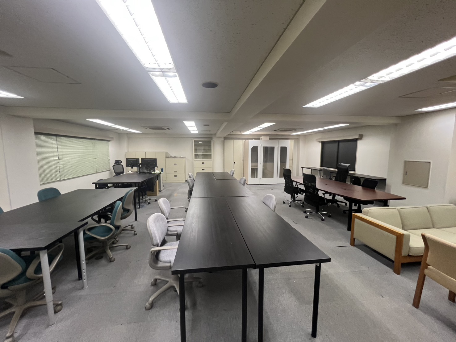 【事務所内什器無償使用可】 ◆大型キャビネット:13台 ◆ロッカー:3台 ◆会議室テーブルセット:2セット ◆応接セット:1セット ◆事務机:1台 ◆その他あり